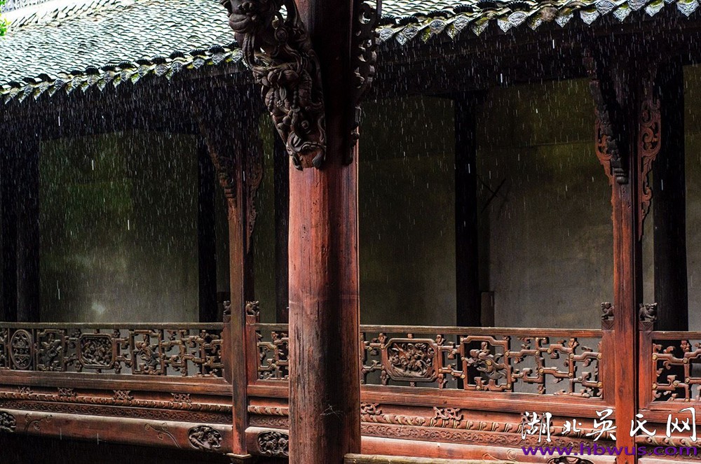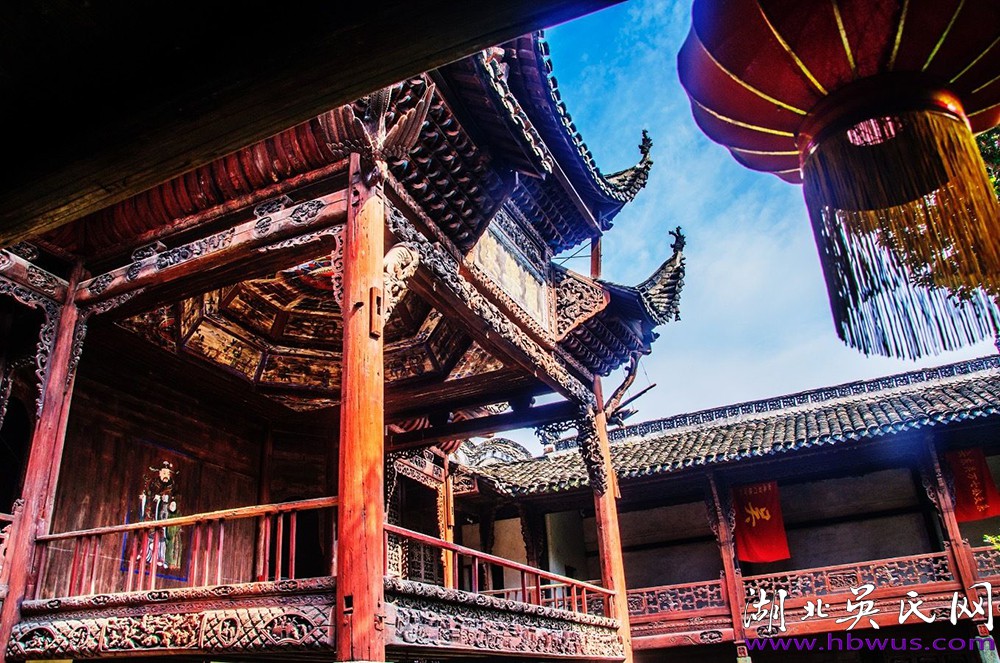 陡山吳氏祠在紅安縣城東北35公里的中和鄉(xiāng)陡山村。為清代民居建筑。始建于清乾隆二十八年(1763年),后來毀于火災。同治十年(1871年)重修陡山吳氏祠,后不幸再次失火。光緒二十八年(1902年)再次重修擴建,歷時兩年建成,形成現(xiàn)存建筑格局。陡山吳氏祠坐南朝北,為一組深3進、廣5間的磚木結構建筑群,占地3000平方米,建筑面積約1410平方米。主體建筑由前幢觀樂樓、中幢拜殿、后重寢殿組成,前、中、后三幢之間,有庭院間隔,廊廡相連,布局嚴謹,渾然一體。