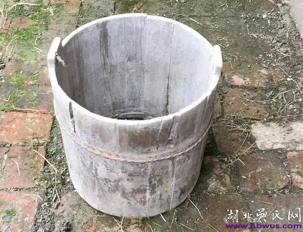 注:吳氏祠堂柏樹被日軍飛機(jī)炸斷后,父親鋸回請(qǐng)木匠做成的水桶,至今保存著,木桶上的挑水梁因年久斷裂被鋸掉了。