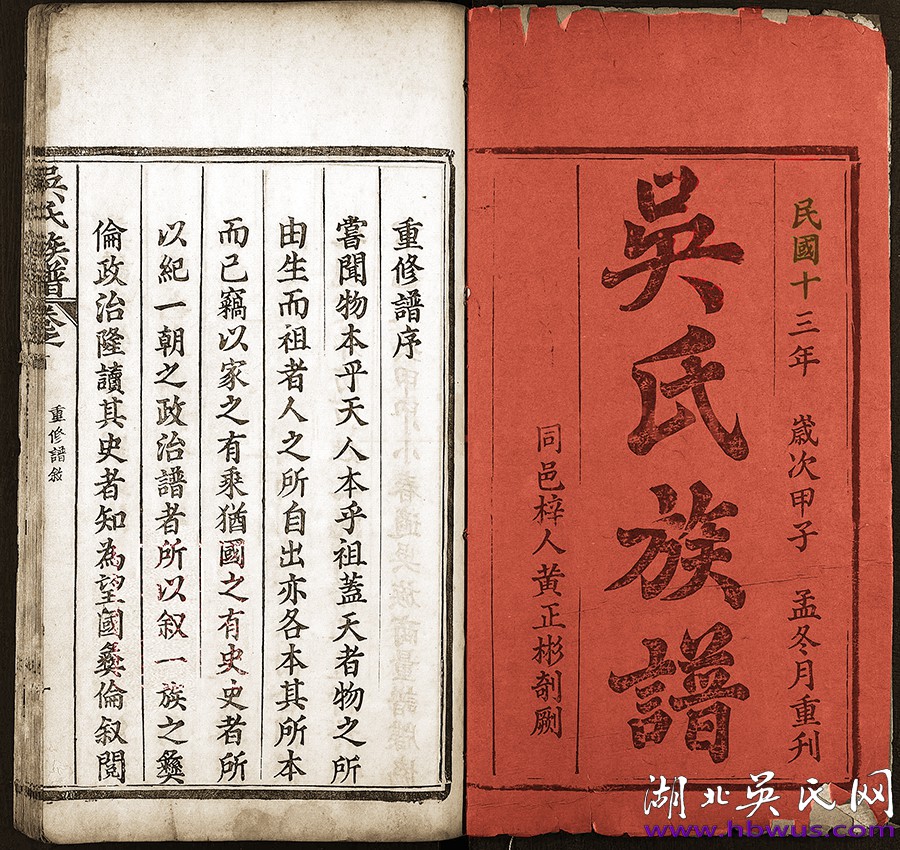 族譜于同治壬申根據(jù)嘉慶丙寅支稿創(chuàng)修,此次為民國十三年(1924年)重修。