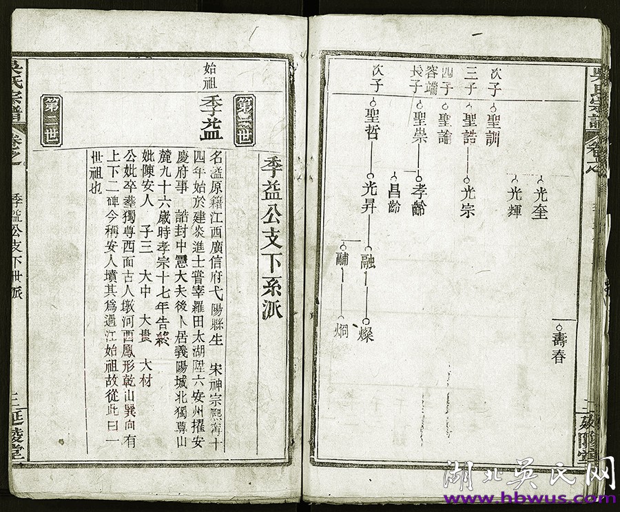 此譜為從貴公支下創(chuàng)修譜,結(jié)合麻城從剛公支下廷瑞公支宗譜,同為民國三十三年(1944年)編修,部分內(nèi)容如序言、字派等基本雷同,兩譜風(fēng)格相似,應(yīng)該是同時編修,各接各支世系。