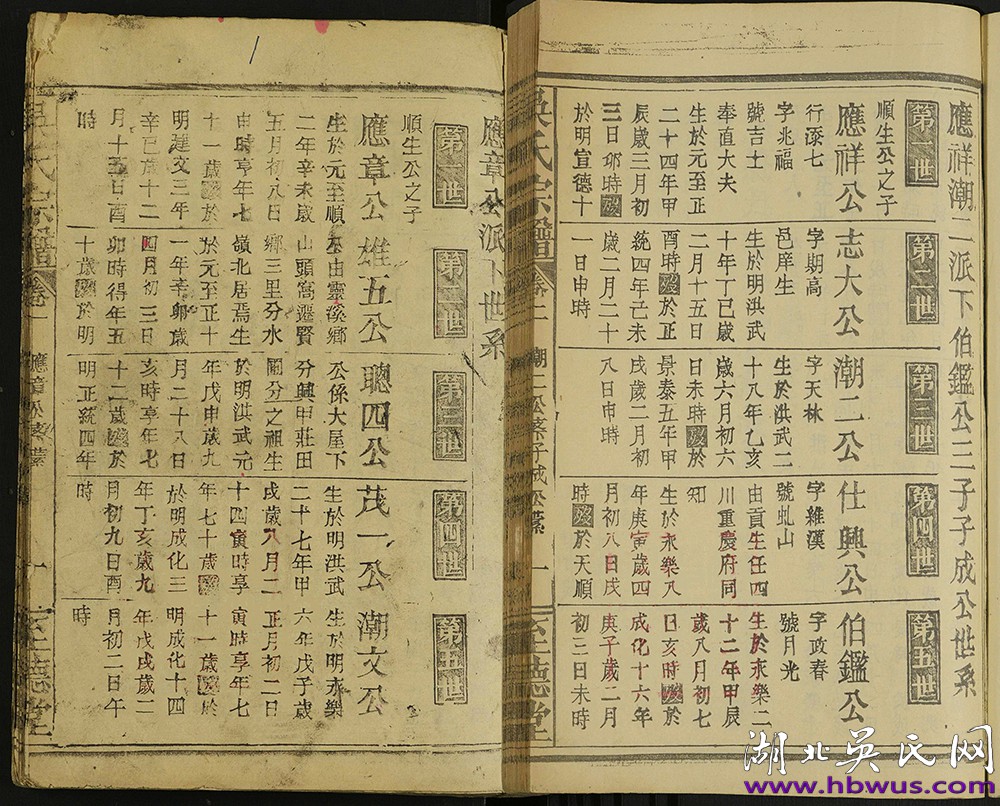 始遷祖順生,為泰伯88世,元末同弟吳梅攜二子應(yīng)章、應(yīng)祥,自江西崇仁金溪水灣遷居武邑(今鄂州)南門外,復(fù)遷馬鄉(xiāng)高家河,后又遷符石鄉(xiāng)謝埠。妣樂氏,生二子應(yīng)章、應(yīng)祥。二公之后以應(yīng)章、應(yīng)祥各為一世祖。
