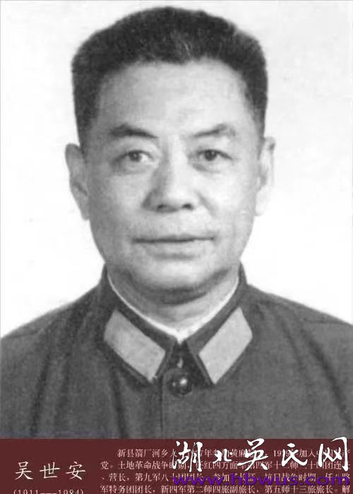 革命先賢 吳世安將軍(以下尊稱為:吳老),1911年11月出生于河南省新縣箭廠河鄉(xiāng)箭廠河村一戶貧苦農(nóng)民家庭,1984年8月4日在湖北武漢仙逝,享年73歲。