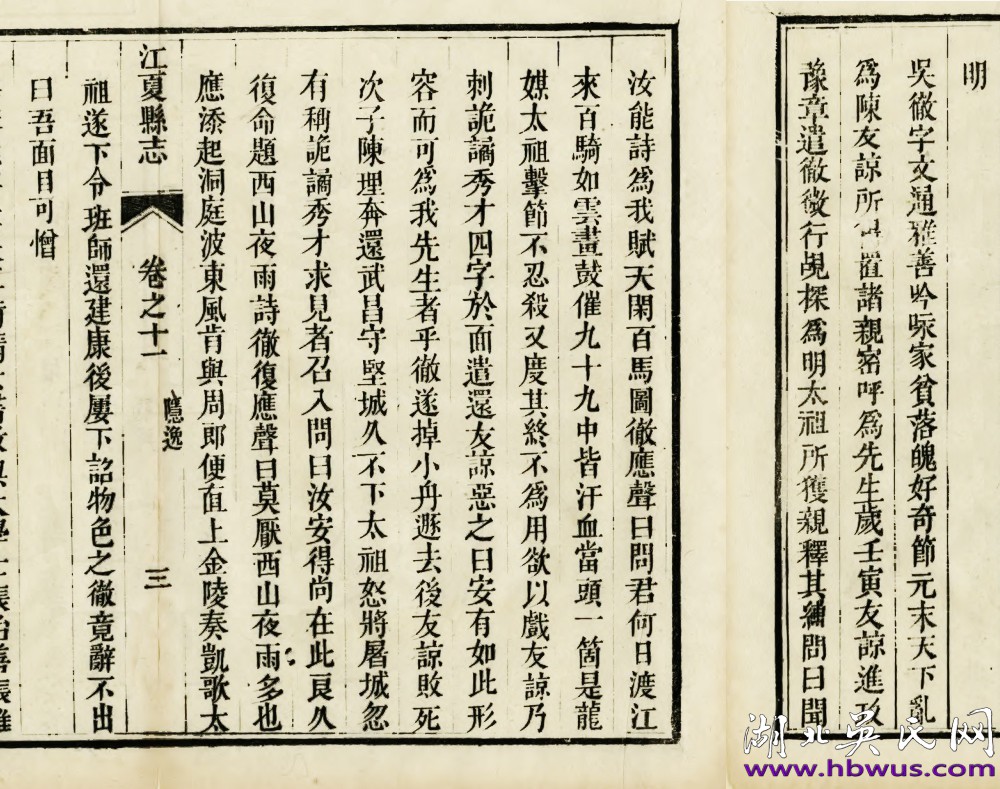清乾隆59年[1794]《江夏縣志》卷十一《隱逸》